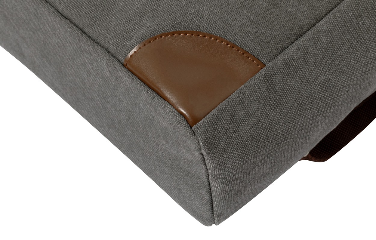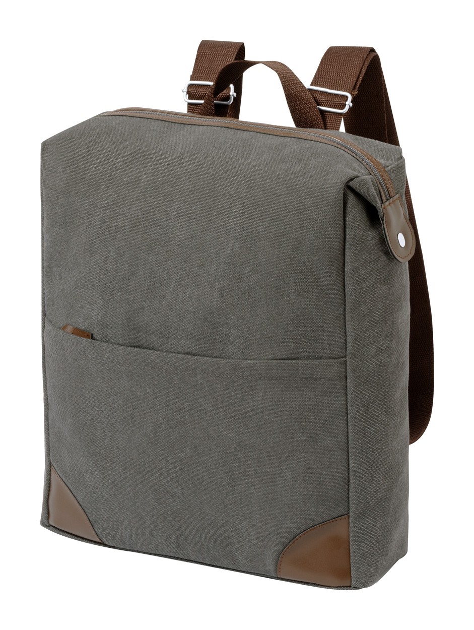Rucsac din pânză, cu compartiment principal cu fermoar și buzunar frontal. Cu compartiment capitonat pentru laptop (15") și tabletă (10"), spate căptușit și detalii din piele PU.