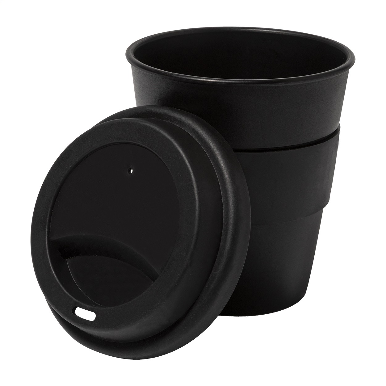 Pahar de voiaj, din plastic PP cu perete simplu, cu capac și mâner din TPE. 350 ml.