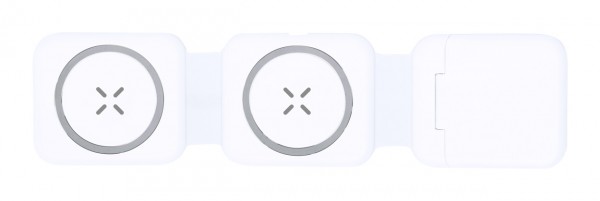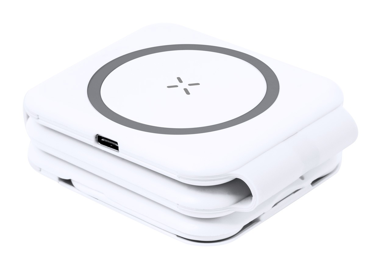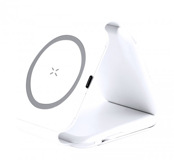 Set încărcător pliabil, din plastic ABS, cu încărcător rapid magnetic wireless (15W) și încărcător wireless secundar pentru ceasuri inteligente și căști. Inclusiv cablu de încărcare cu conexiuni micro USB, USB, USB-C și Lightning.