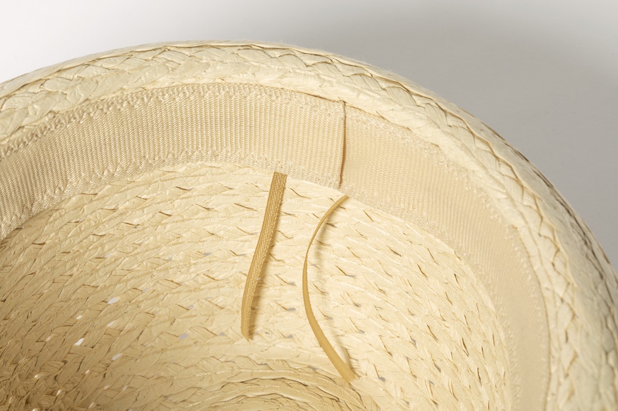 Pălărie de paie unisex din fibră sintetică cu bandă interioară reglabilă.