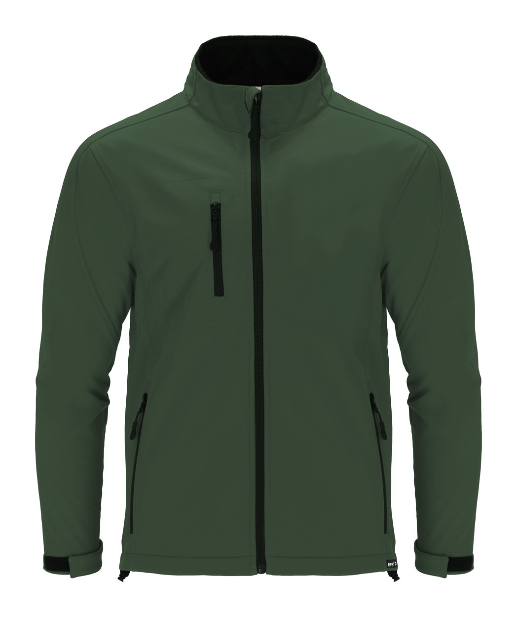 Jachetă softshell RPET cu fermoar, cu trei straturi, rezistentă la vânt și la apă, cu fermoar la piept și buzunare laterale. Exterior: 94% poliester RPET și 6% elastan. Interior: 100% lână polară din poliester RPET. 340 g/m².