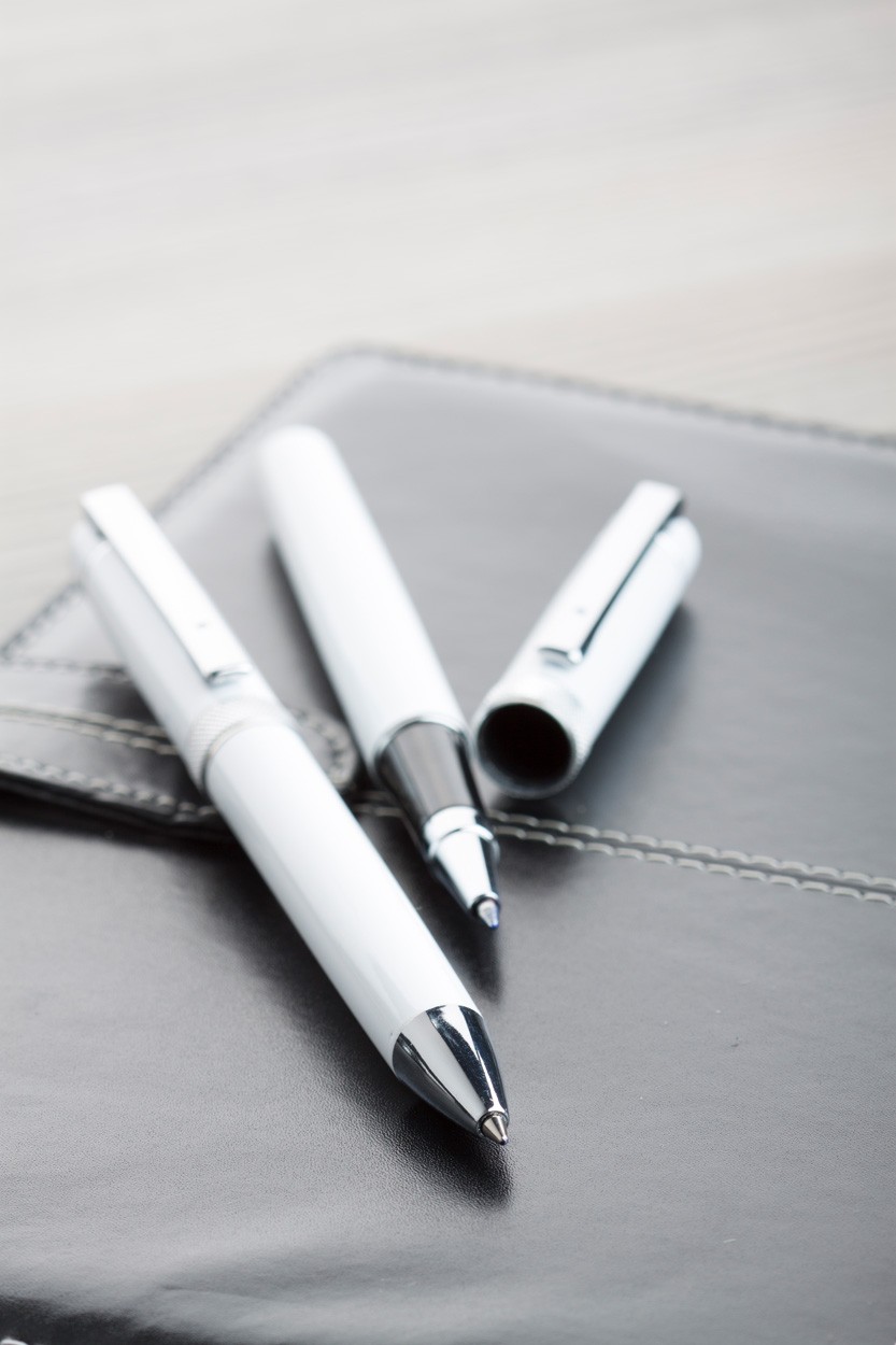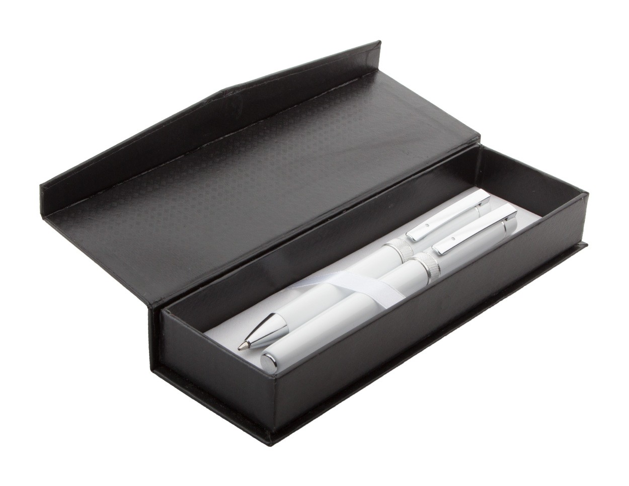 Set pix şi roller din aluminiu. Corp lucios, elemente de decor din aluminiu mat. În cutie neagră de cadou. Mină albastră.