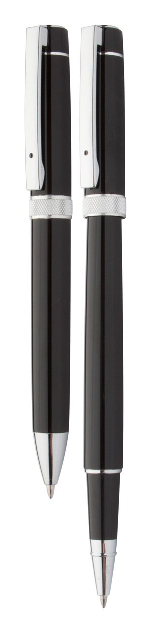 Set pix şi roller din aluminiu. Corp lucios, elemente de decor din aluminiu mat. În cutie neagră de cadou. Mină albastră.