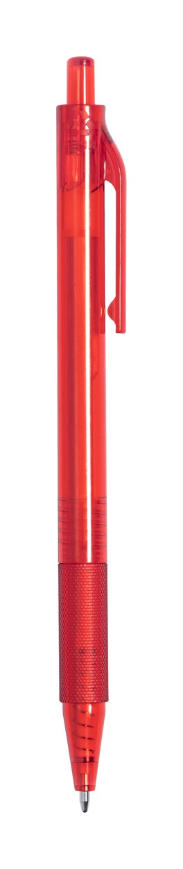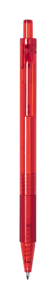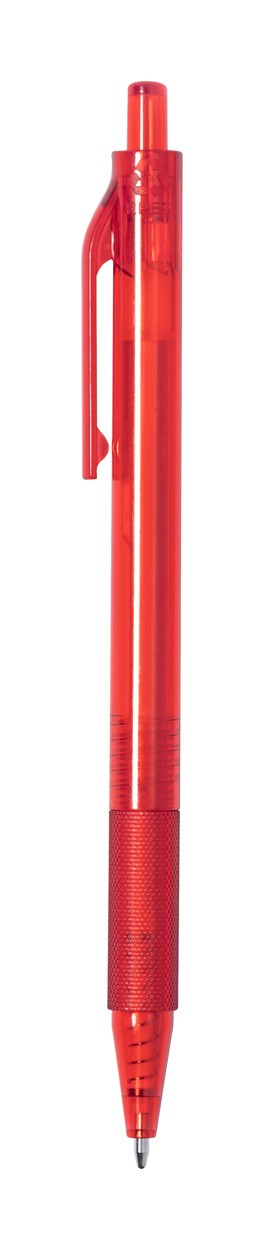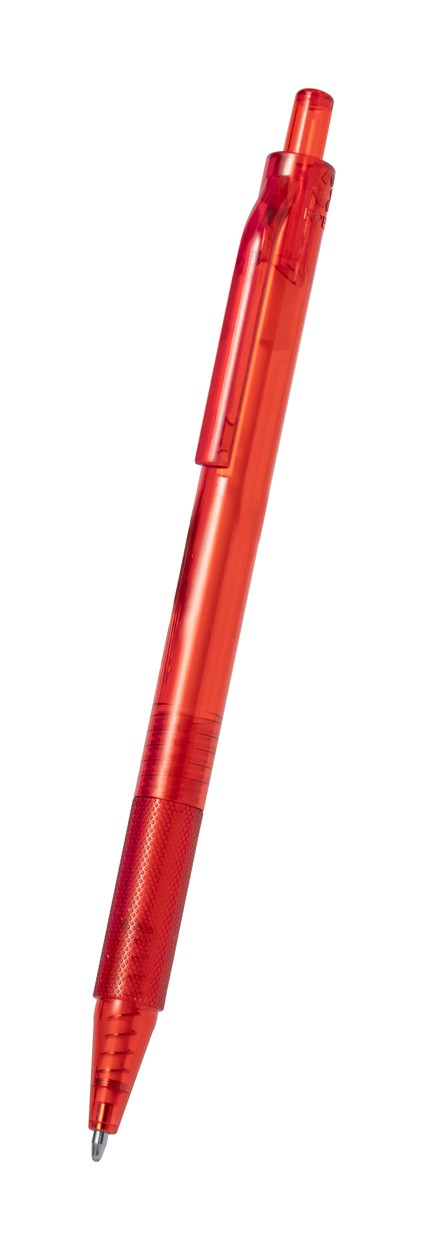 Pix RPET cu corp transparent, mâner de culoare asortată și mină albastră.