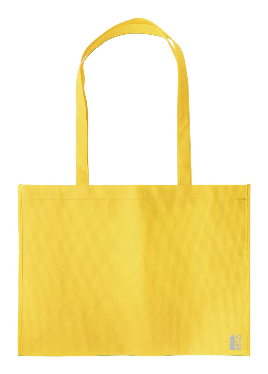 Sacoșă de cumpărături din RPET nețesut, cu burduf și mânere lungi, 80 g/m². Cu semn distinctiv RPET.