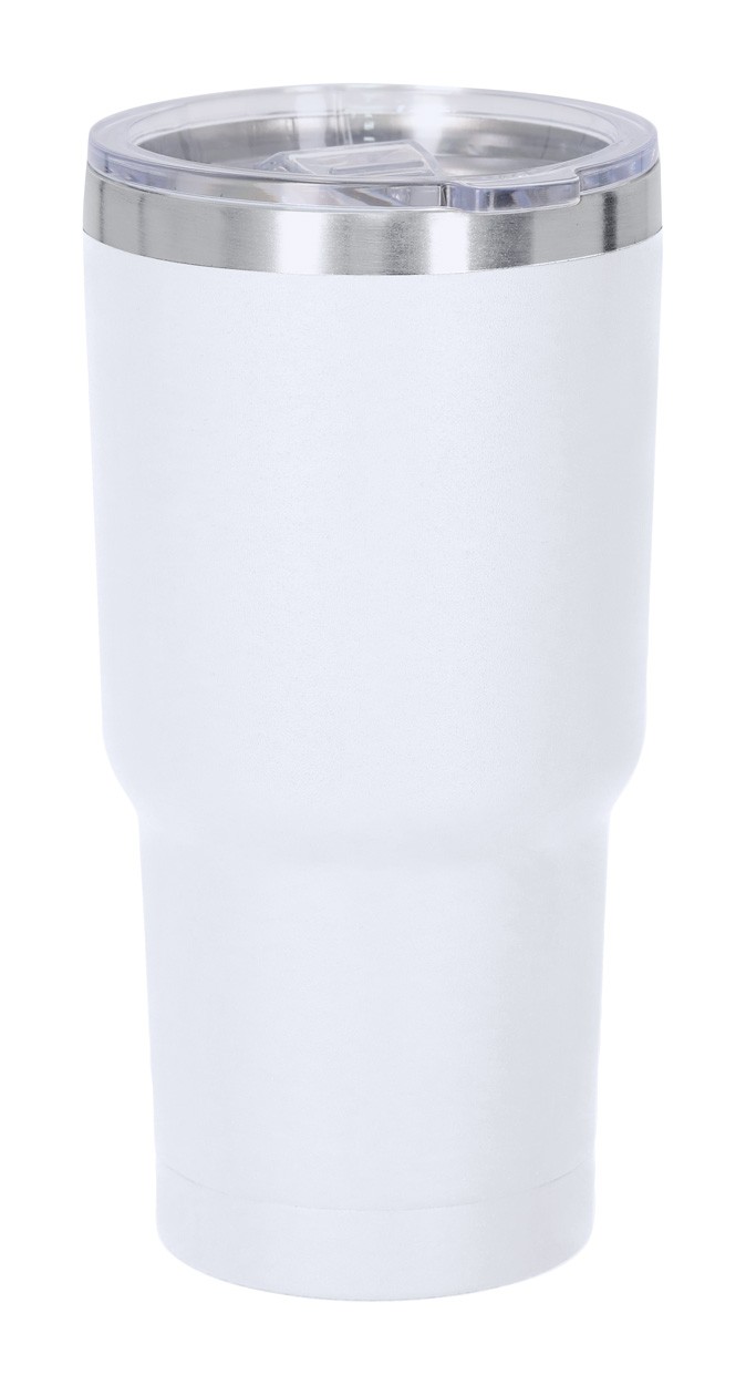 Cană termoizolată, din oțel inoxidabil, cu perete dublu, cu capac de băut, 530 ml. Izolația menține băuturile calde timp de 3 ore și reci timp de 6 ore.