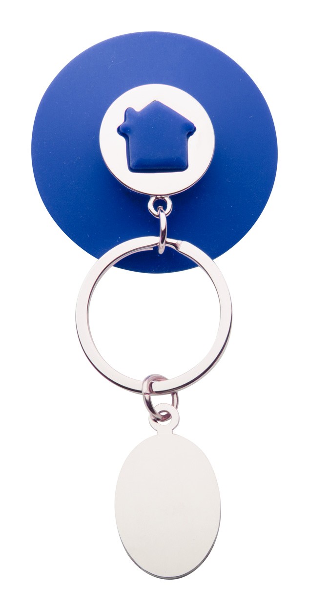 Breloc metalic cu ventuză din silicon, în formă de casă.