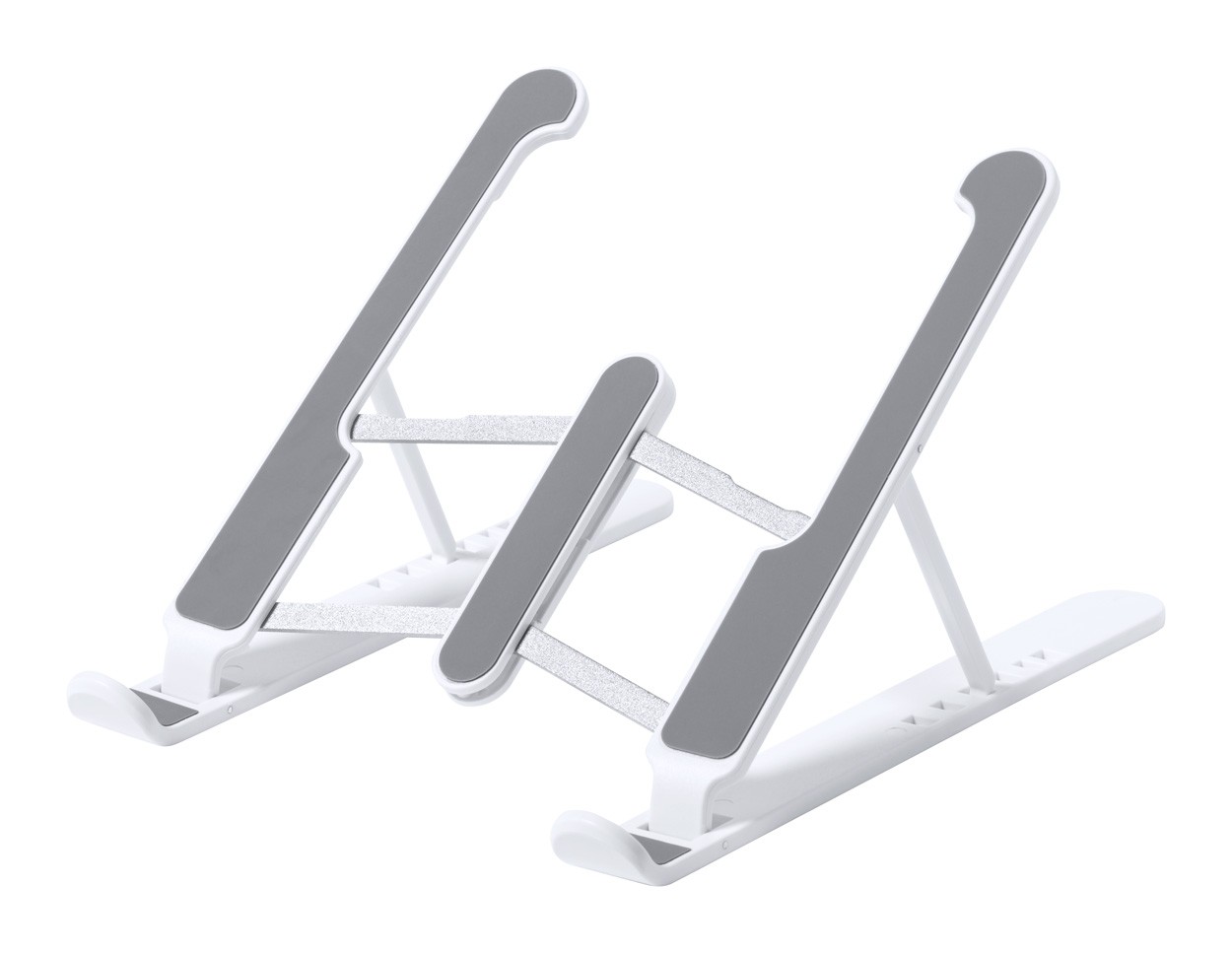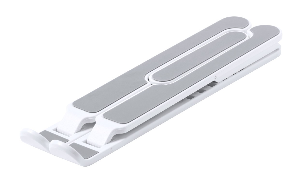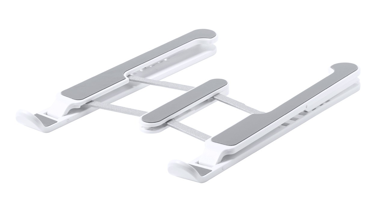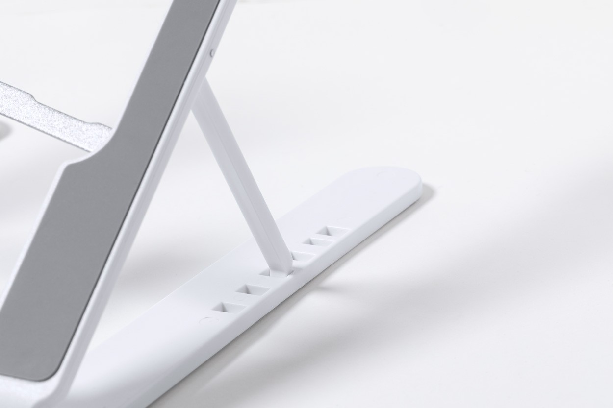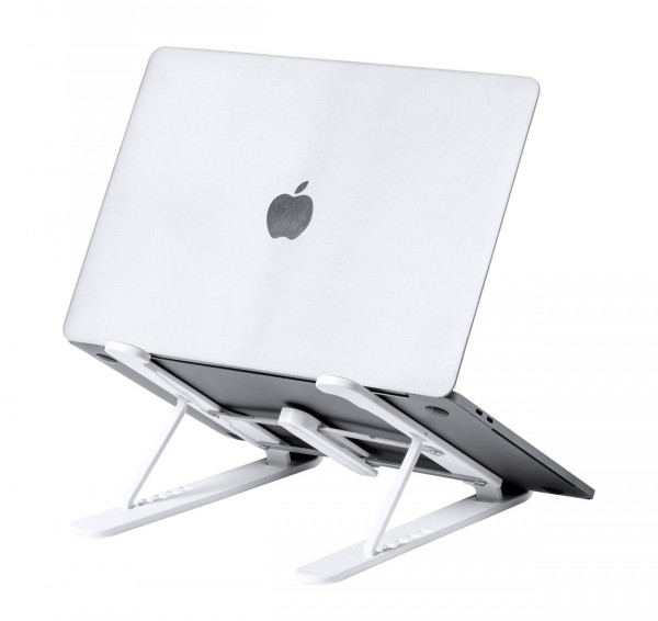Foldable ABS laptop holder with anti-slip surface and adjustable height, in velvet pouch.