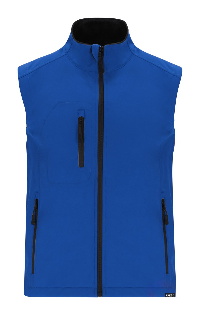 Vestă cu trei straturi, rezistentă la vânt și la apă, cu fermoar RPET, cu buzunare laterale și pe piept. Exterior: 94% poliester RPET și 6% elastan. Interior: 100% lână polară din poliester RPET. 340 g/m².