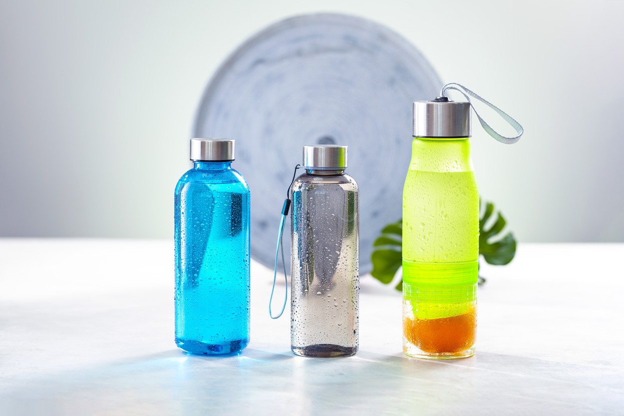 Sticlă sport tritan transparentă, fără BPA, cu capac din oțel inoxidabil, 600 ml. Nu este potrivit pentru băuturi carbogazoase.