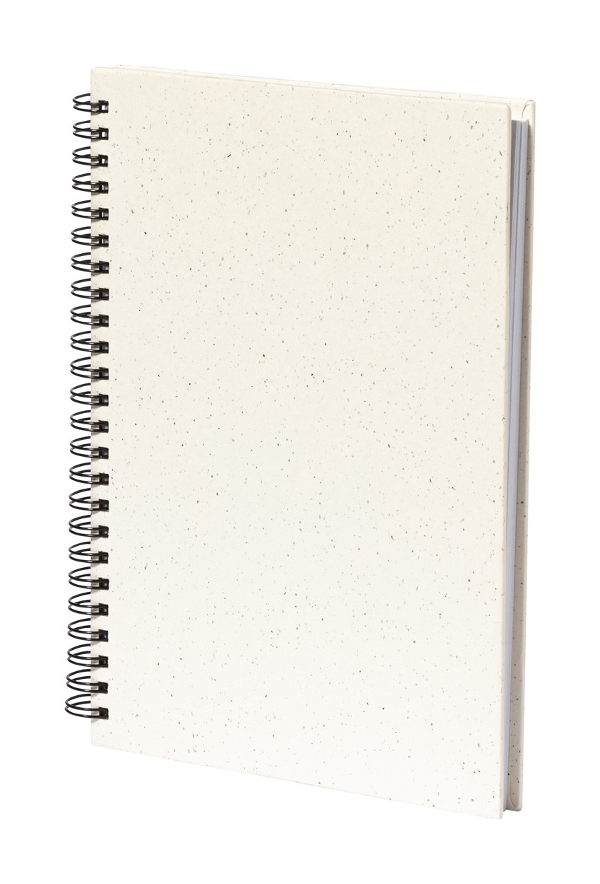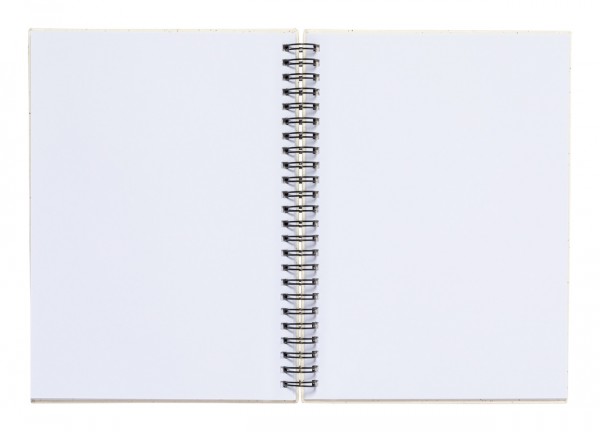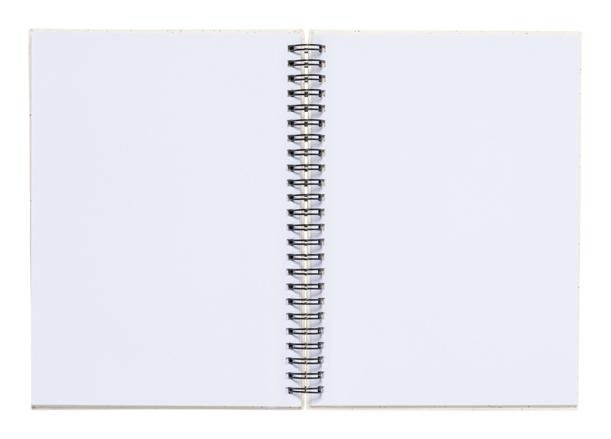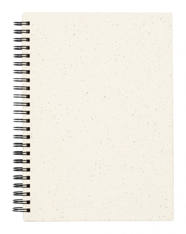 Caiet spiralat, acoperit cu carton reciclat, cu 80 de foi veline din hârtie reciclată, dimensiune A5.
