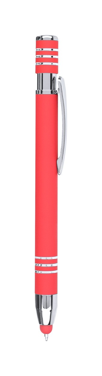 Pix din aluminiu cu capăt pentru ecran tactil, cu finisaj cauciucat, clemă și detalii cromate. Cu acoperire specială pentru gravarea laser în oglindă. Cu mină albastră.