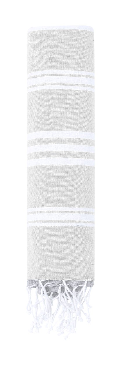 Prosop de plajă pareo, bicolor, din bumbac reciclat (130 g/m²) și poliester (125 g/m²).
