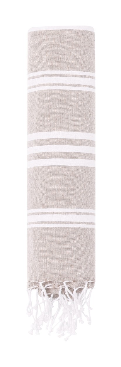 Prosop de plajă pareo, bicolor, din bumbac reciclat (130 g/m²) și poliester (125 g/m²).