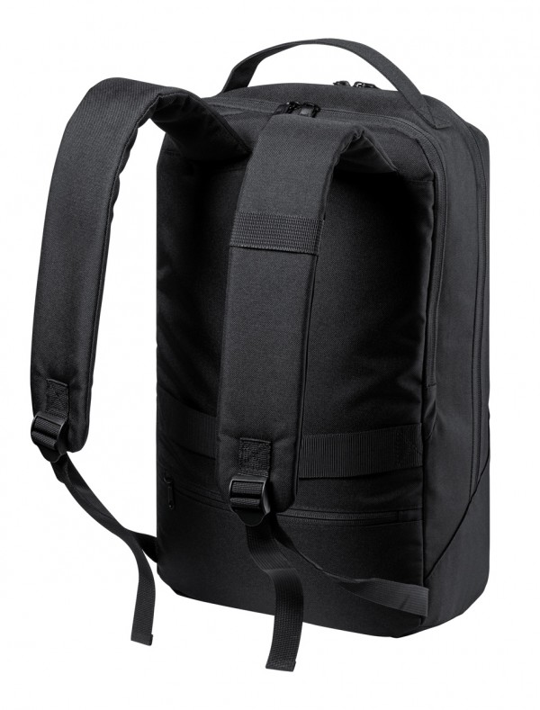 Rucsac RPET, rezistent la apă, cu compartimente cu fermoar, compartiment căptușit pentru laptop (15") și tabletă (10"), curea pentru troler, buzunar antifurt ascuns, spate și bretele ergonomice. Poliester 600D RPET cu etichetă distinctivă RPET.