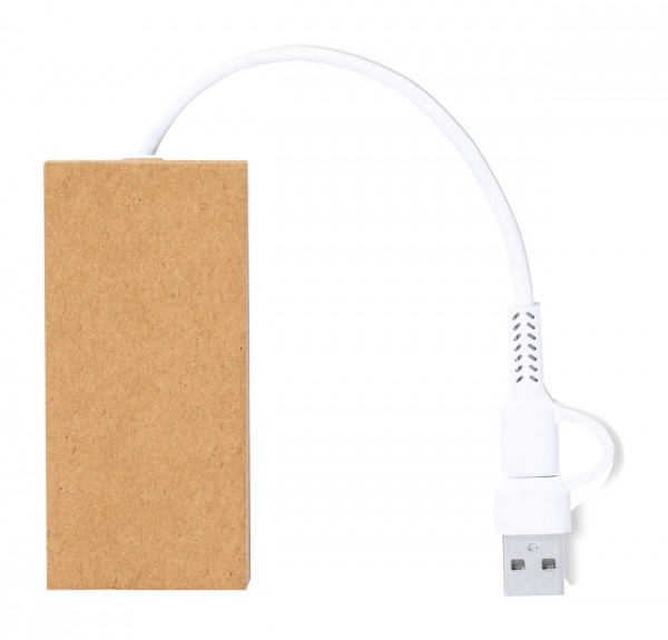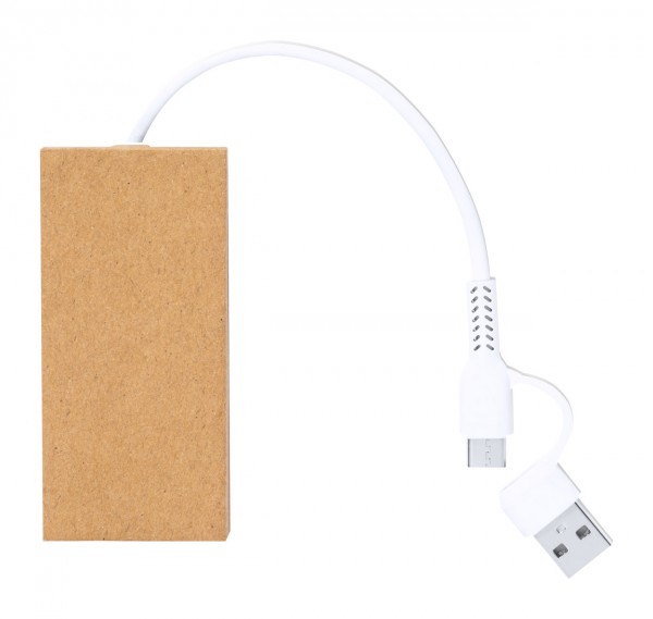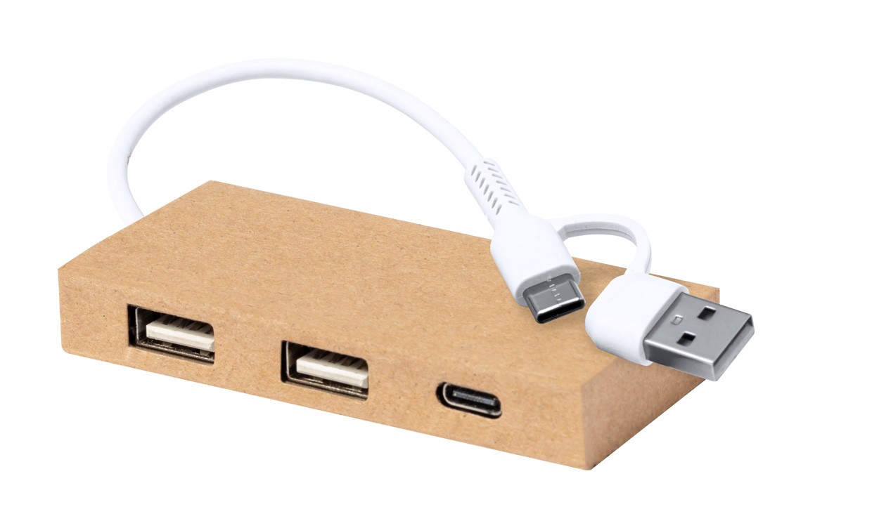 Hub USB, din hârtie reciclată, cu 2 porturi USB și 1 USB-C, USB 2.0. Inclusiv cablu cu conexiuni USB și USB-C.