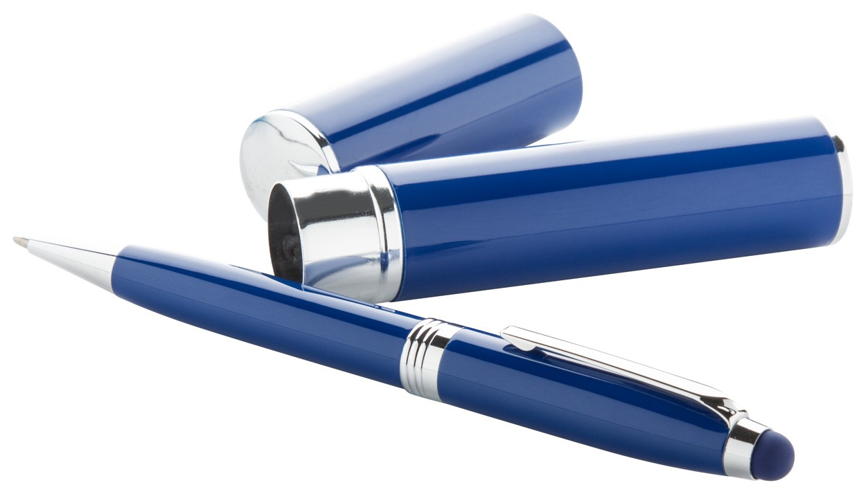 Pix metalic touch screen, mină albastră, în cutie de aluminiu.