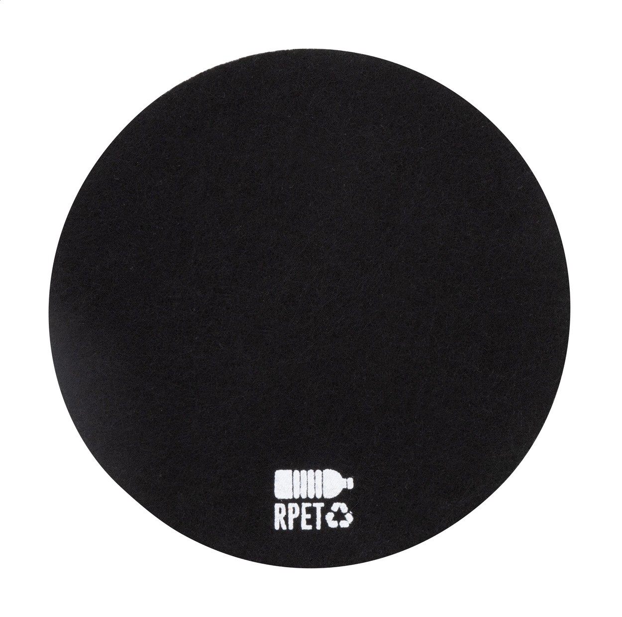 Coaster rotund, din fetru RPET. Cu semn distinctiv RPET.