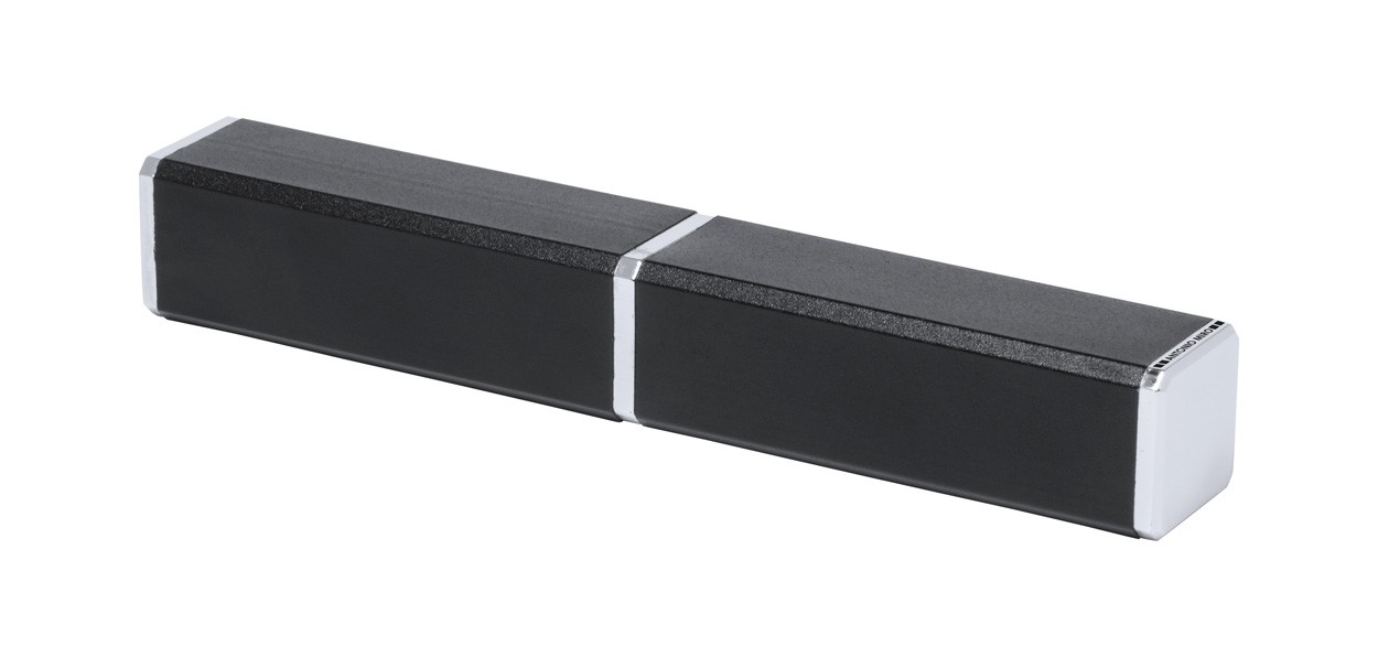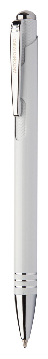 Pix din aluminiu cu mină albastră, în etui din plastic negru. Marca Antonio Miro.