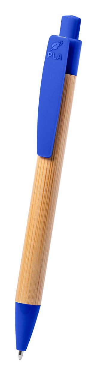 Pix din bambus cu piese din plastic PLA colorate. Cu mină albastră. Piesele din plastic sunt 100% PLA compostabile.