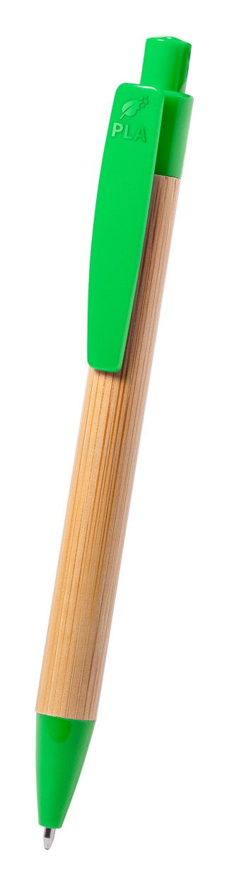 Pix din bambus cu piese din plastic PLA colorate. Cu mină albastră. Piesele din plastic sunt 100% PLA compostabile.