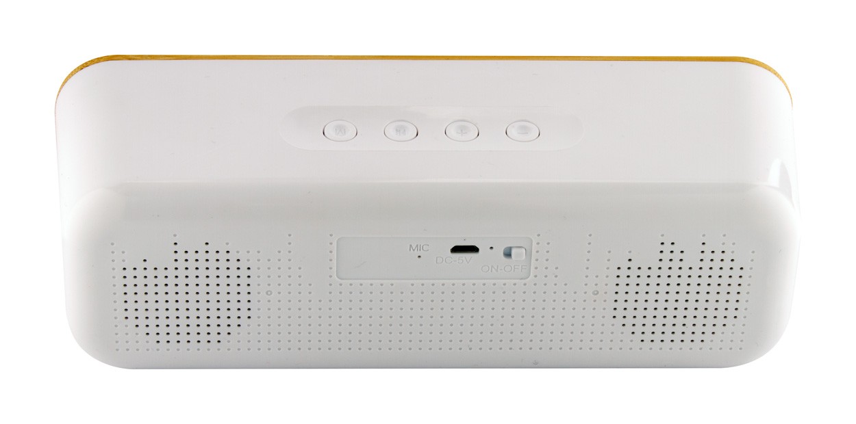 Difuzor fără fir în carcasă din ABS reciclat și bambus, cu 2 drivere de difuzor și baterie reîncărcabilă încorporată. Cu funcții de apelare mâini libere și radio FM. Inclusiv cablu de încărcare USB.