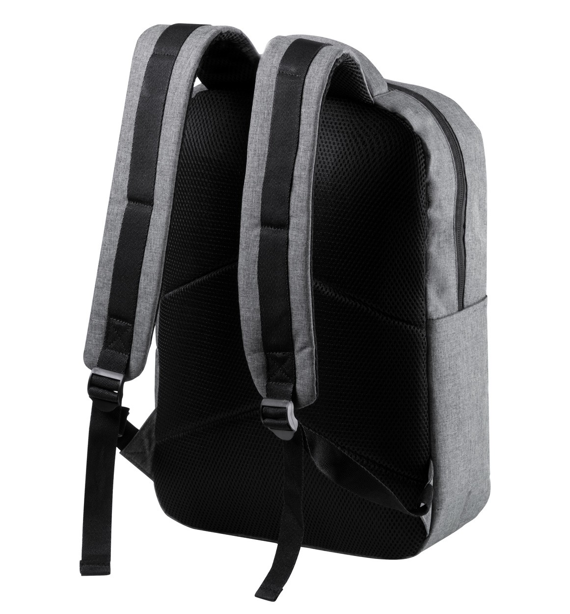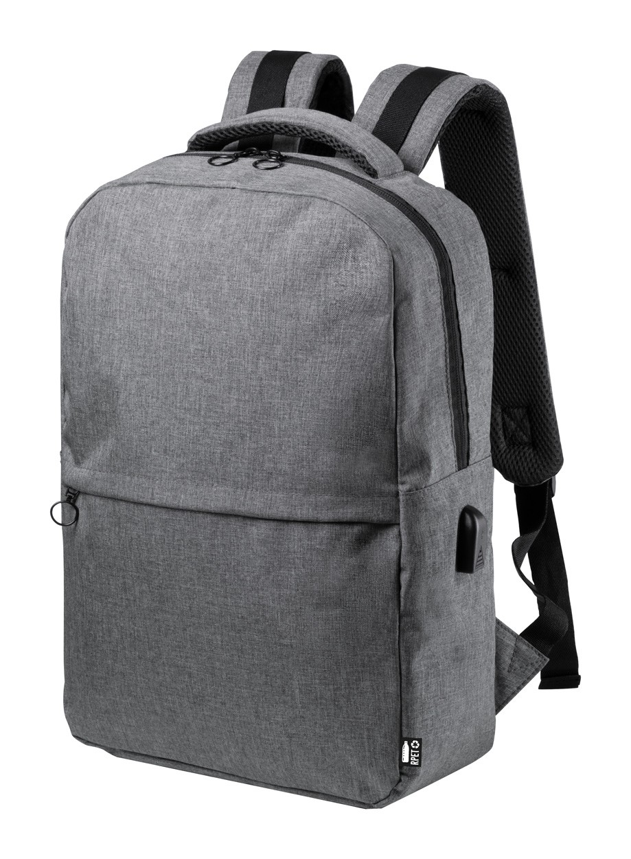 Rucsac cu compartimente cu fermoar, compartiment pentru laptop (15 ") și compartiment pentru tabletă (10"), spate și bretele căptușite. Cu conexiune USB încorporată pentru power bank. Cu etichetă distinctă RPET. PET poliester reciclat.