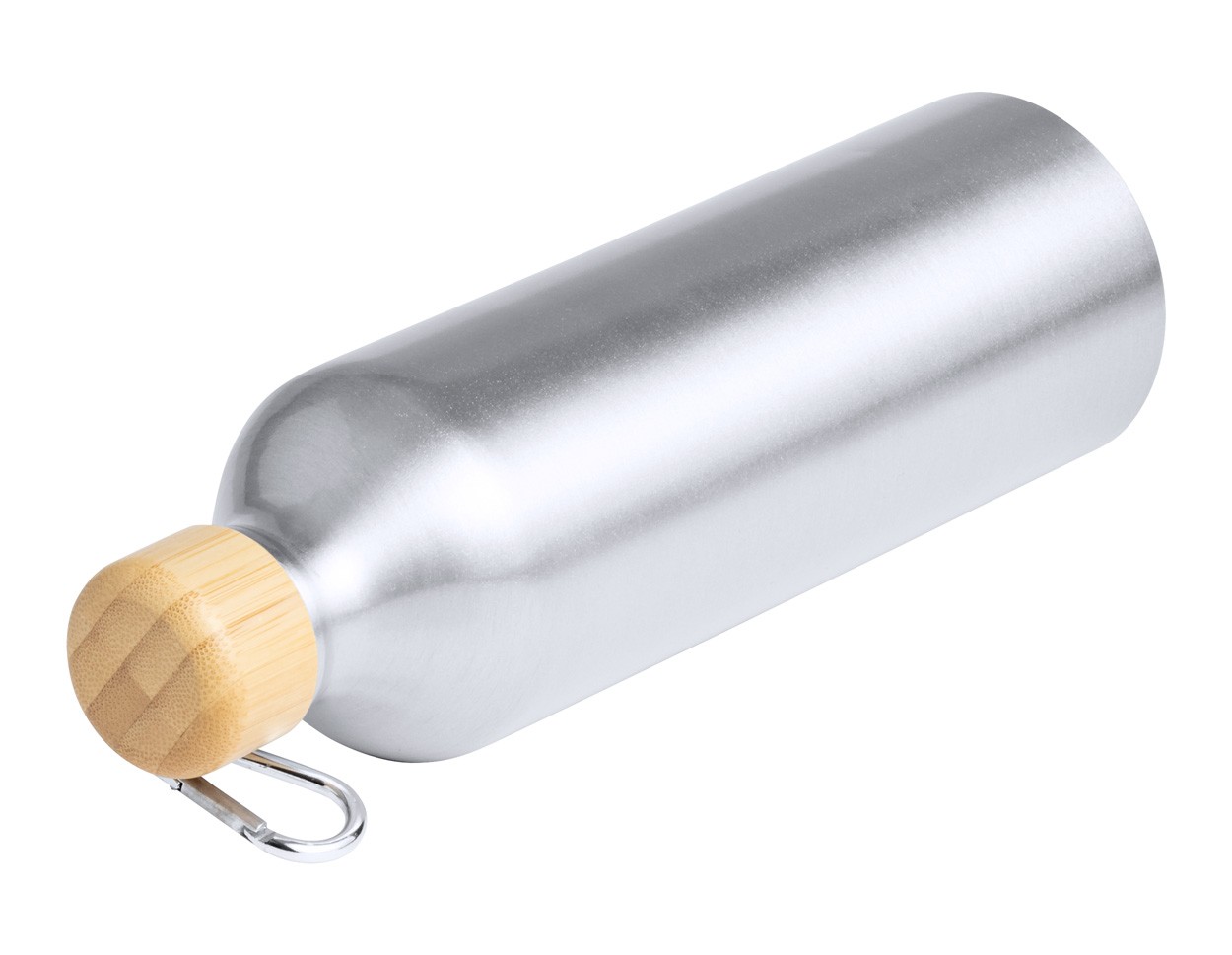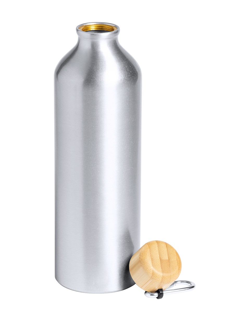 Sticlă sport din aluminiu cu capac din bambus și carabină, 800 ml. Nu este potrivit pentru băuturi carbogazoase.
