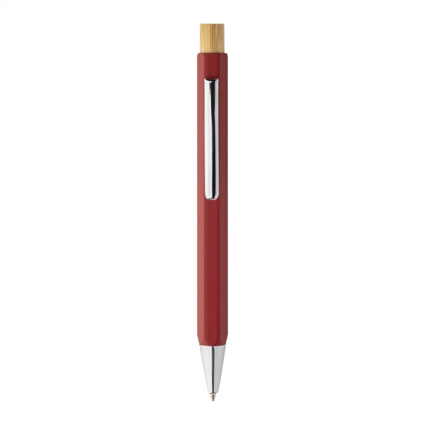 Pix hexagonal, din aluminiu reciclat, cu buton din bambus și piese cromate. Cu mină albastră.