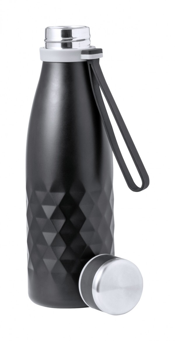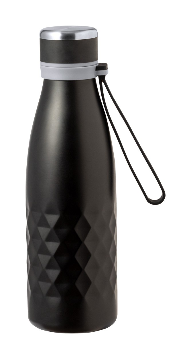 Termos cu perete dublu, din oțel inoxidabil, cu curea de transport din silicon, 550 ml. Izolația menține băuturile calde timp de 3 ore și reci timp de 15 ore.