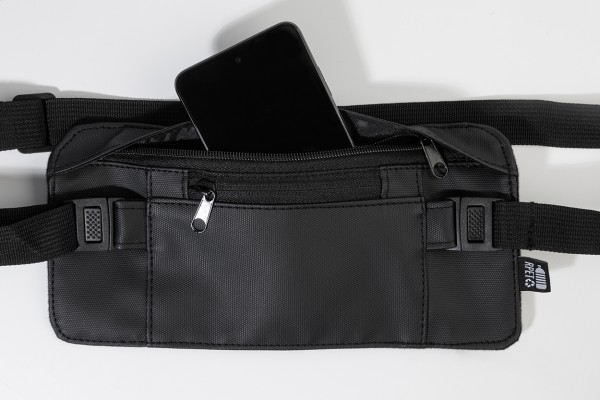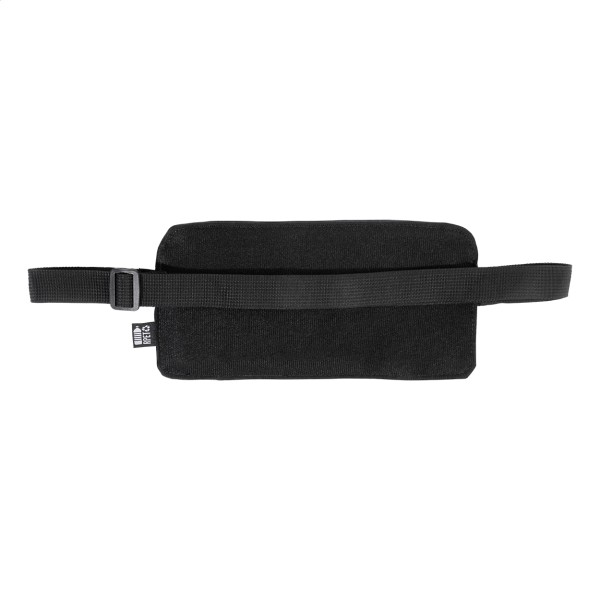 Borsetă slim, din RPET, cu partea frontală acoperită cu PU, compartiment cu fermoar și buzunar frontal, precum și curea reglabilă. Poliester RPET 600D acoperit cu PU, cu etichetă RPET distinctivă.