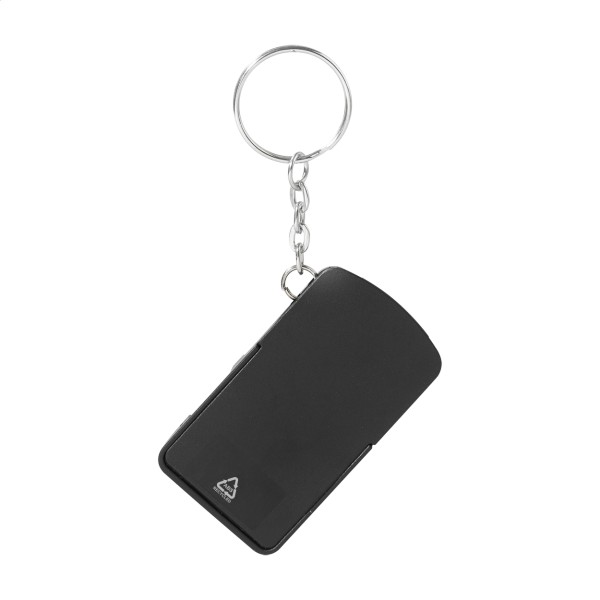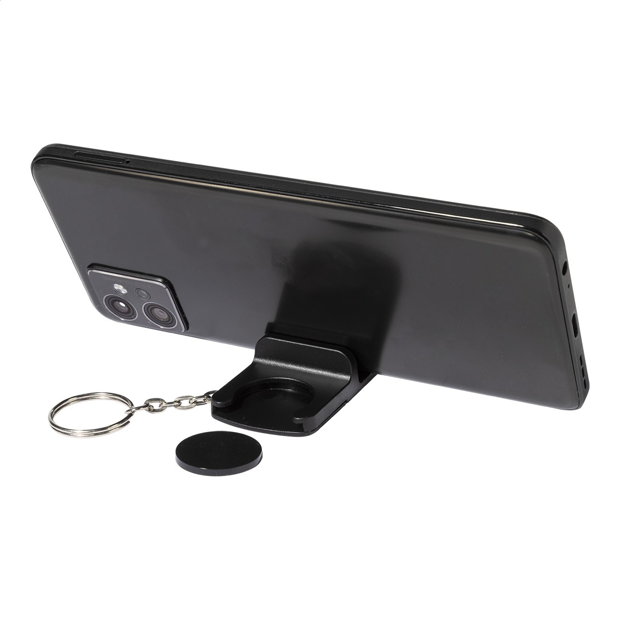 Breloc pentru monede de cărucior, din ABS reciclat, cu suport pentru telefon mobil. Dimensiunea monedei: ø23×2 mm.