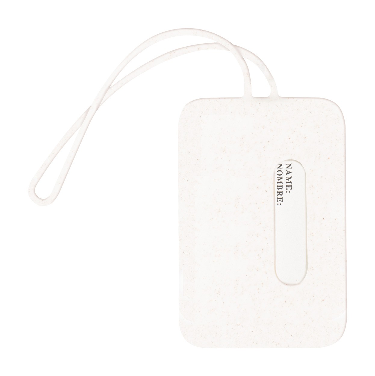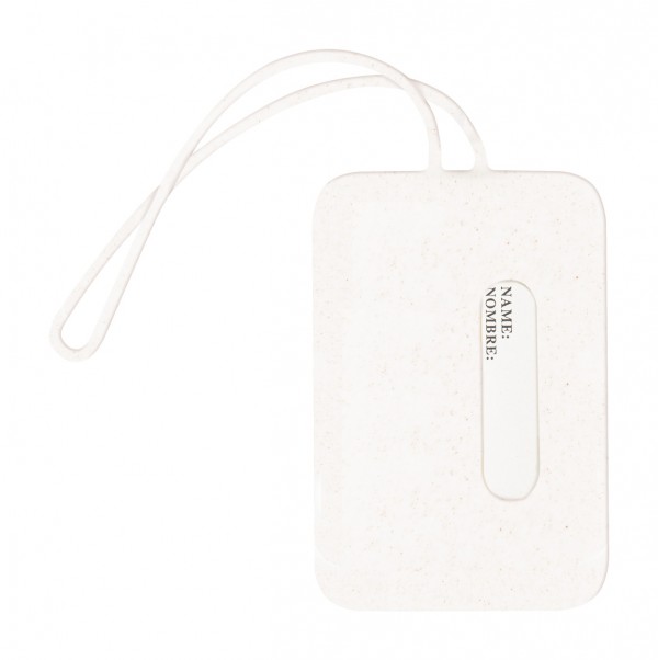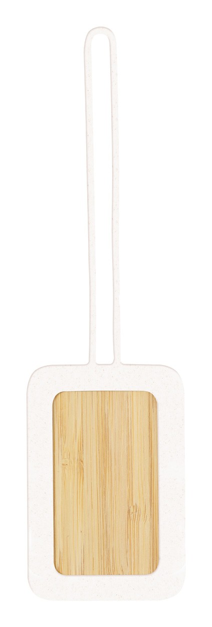 Etichetă de bagaj, din bambus și silicon, cu curea elastică.
