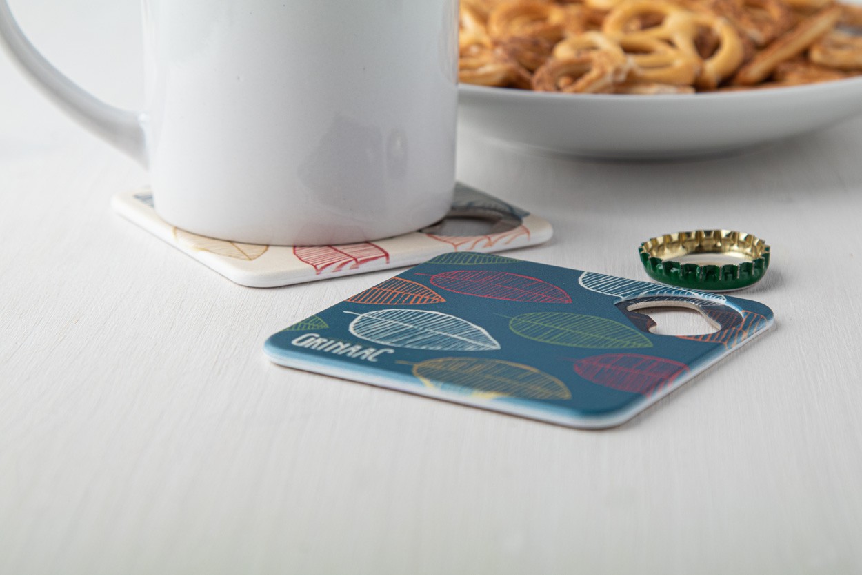 Biscuite pentru pahar din plastic cu desfăcător metalic, antiderapant.