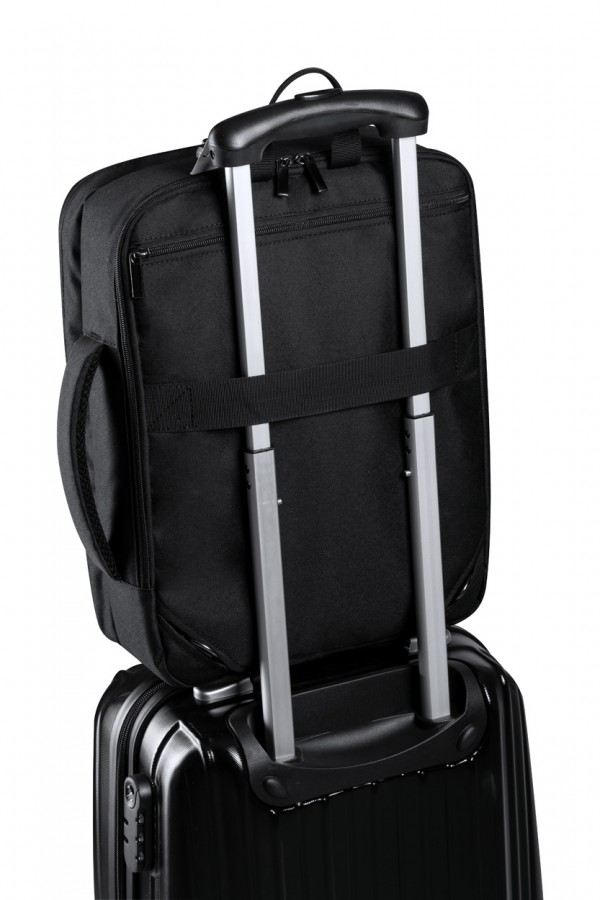 Rucsac / geantă pentru documente cu compartiment pentru laptop (15 "), spate și bretele căptușite. Curea pentru cărucior, bretele de umăr detașabile. Poliester 600D.