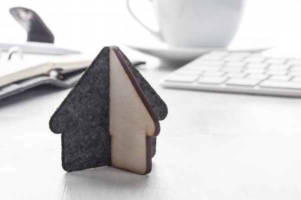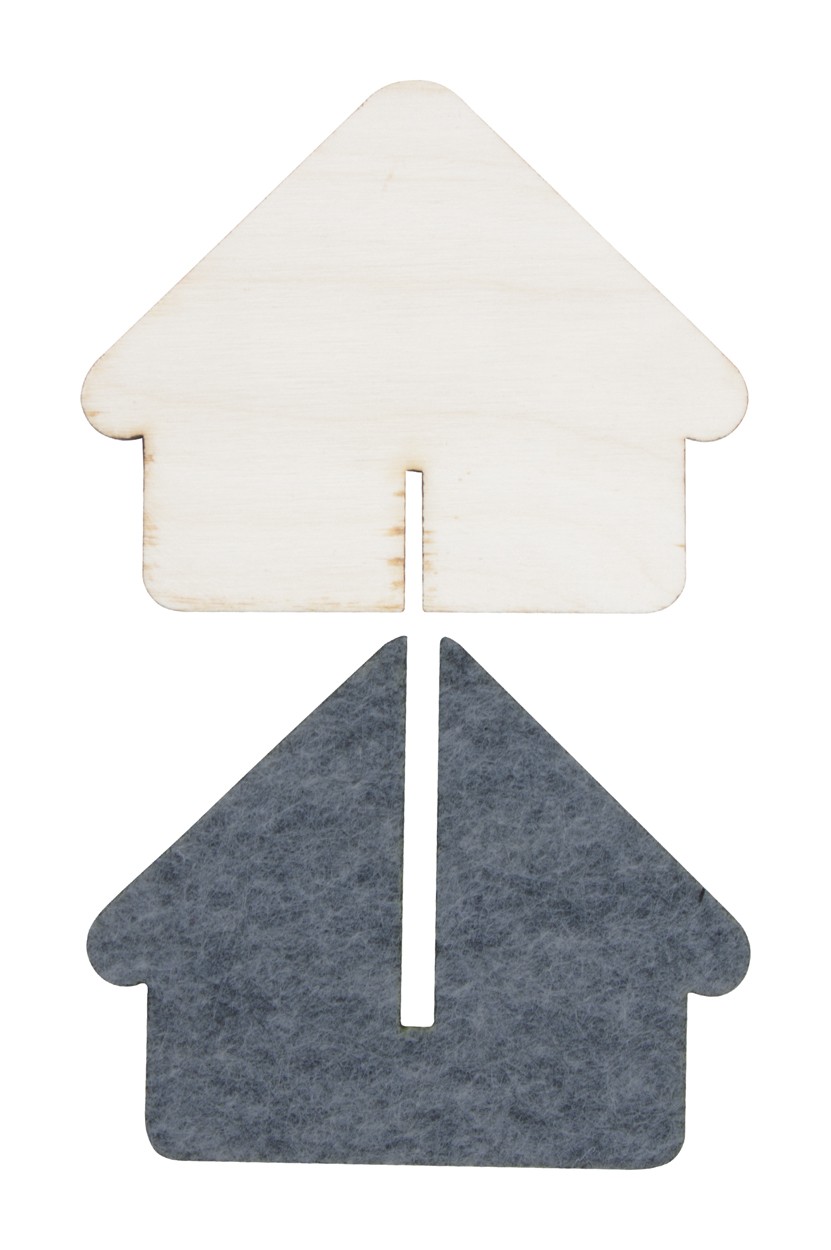 Decorațiune în formă de casă din lemn și fetru. Nu este asamblată.