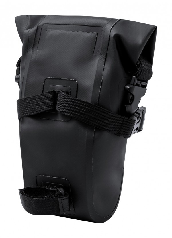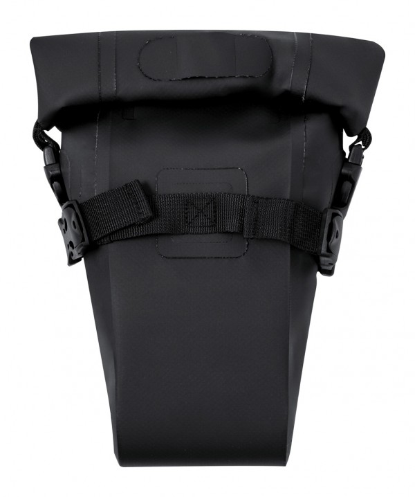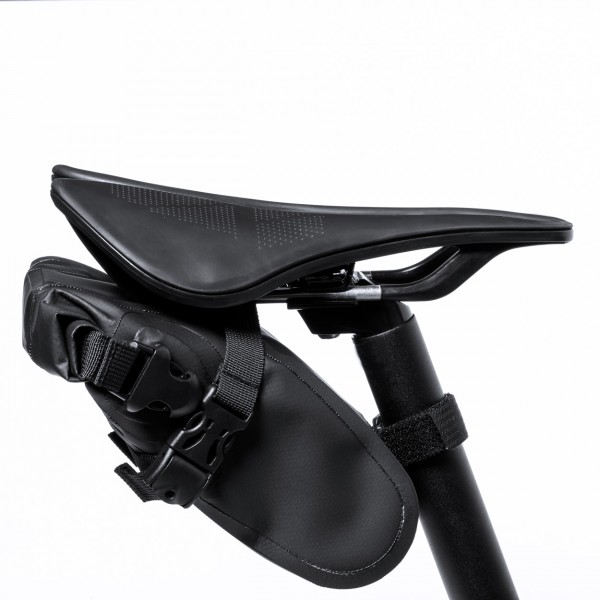 Geantă pentru șa de bicicletă, impermeabilă, cu fermoar, cu închidere cu cataramă, din PVC.
