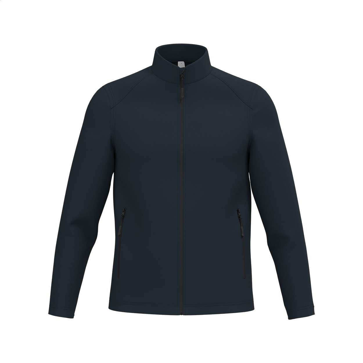 Jacheta softshell, cu două straturi, fermoar și buzunare laterale cu fermoar. Cu fermoare contrastante. Țesătură impermeabilă. Exterior: 95% poliester și 5% elastan. Interior: 100% poliester micro polar fleece. Produs marca iDeal Basic.