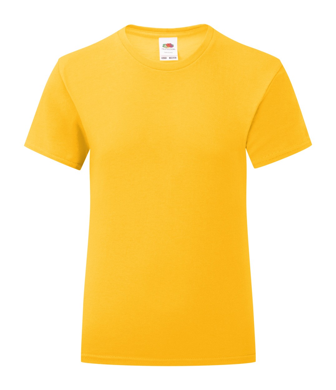 Tricou pentru fete, color, cu gât rotund. 100% bumbac pieptănat, ring-spun, 150 g/m². Produs marca Fruit of the Loom.