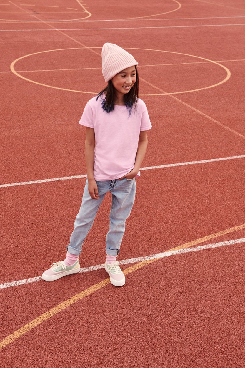 Tricou pentru fete, color, cu gât rotund. 100% bumbac pieptănat, ring-spun, 150 g/m². Produs marca Fruit of the Loom.