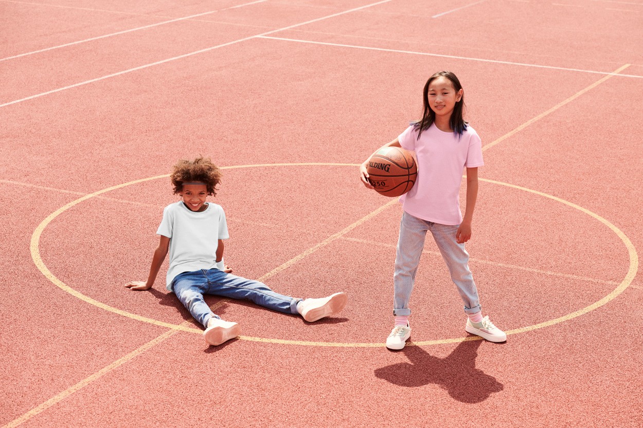 Tricou pentru copii, cu gât rotund, de culoare albă. 100% bumbac pieptănat, ring-spun, 140 g/m². Produs marca Fruit of the Loom.