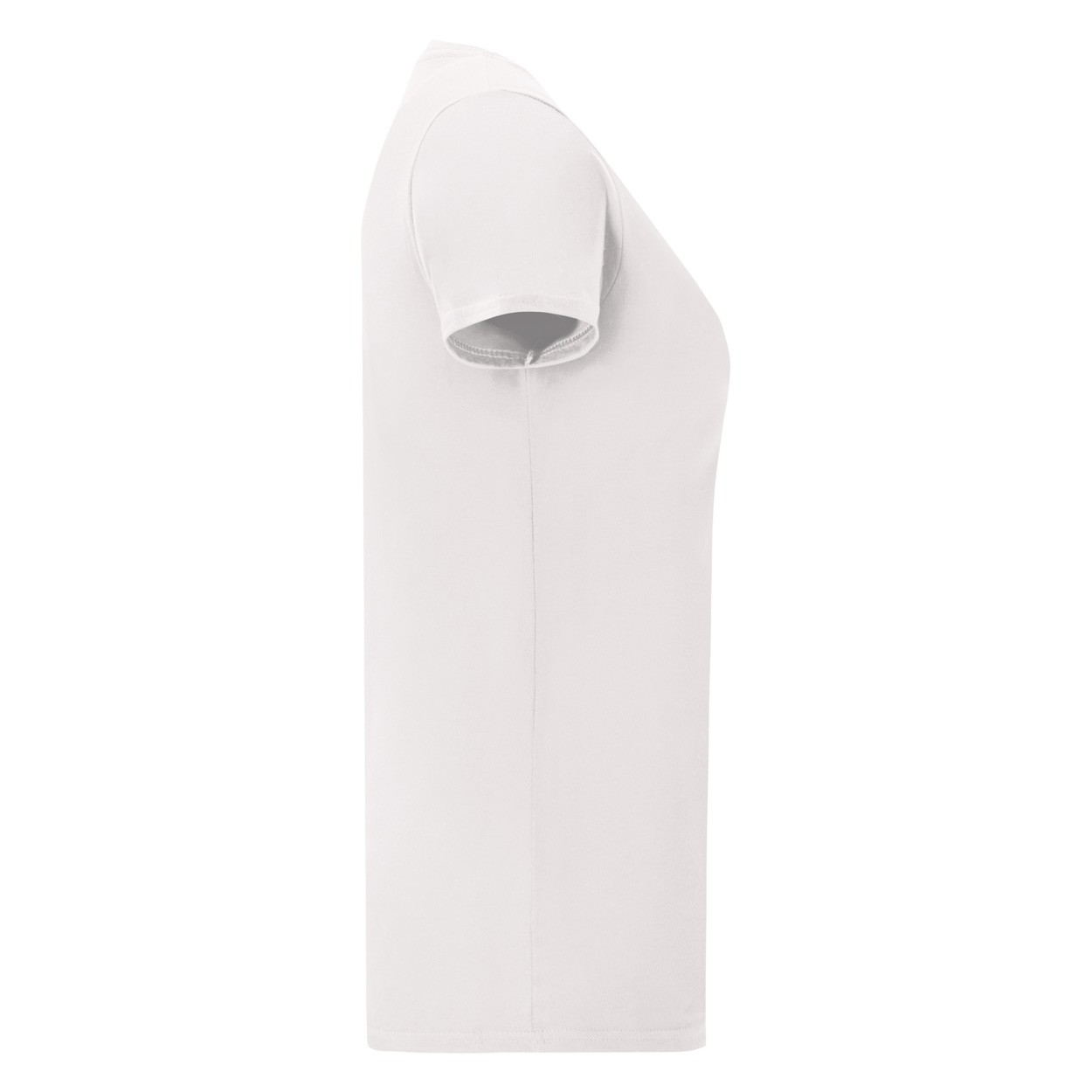Tricou de damă, cu gât rotund, de culoare albă. 100% bumbac pieptănat, ring-spun, 140 g/m². Produs marca Fruit of the Loom.