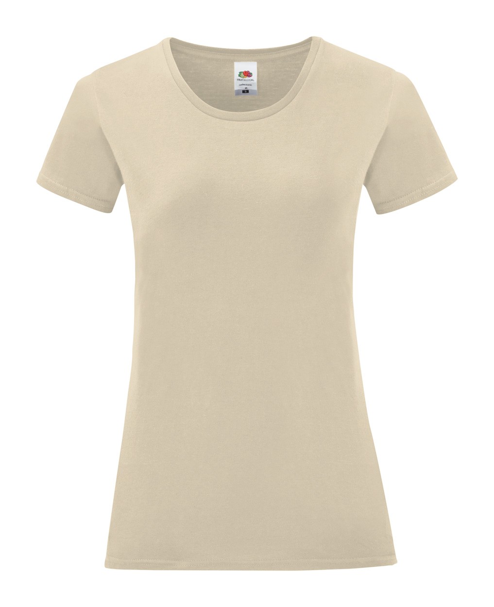 Tricou de damă, color, cu gât rotund. 100% bumbac pieptănat, ring-spun, 150 g/m². Produs marca Fruit of the Loom.