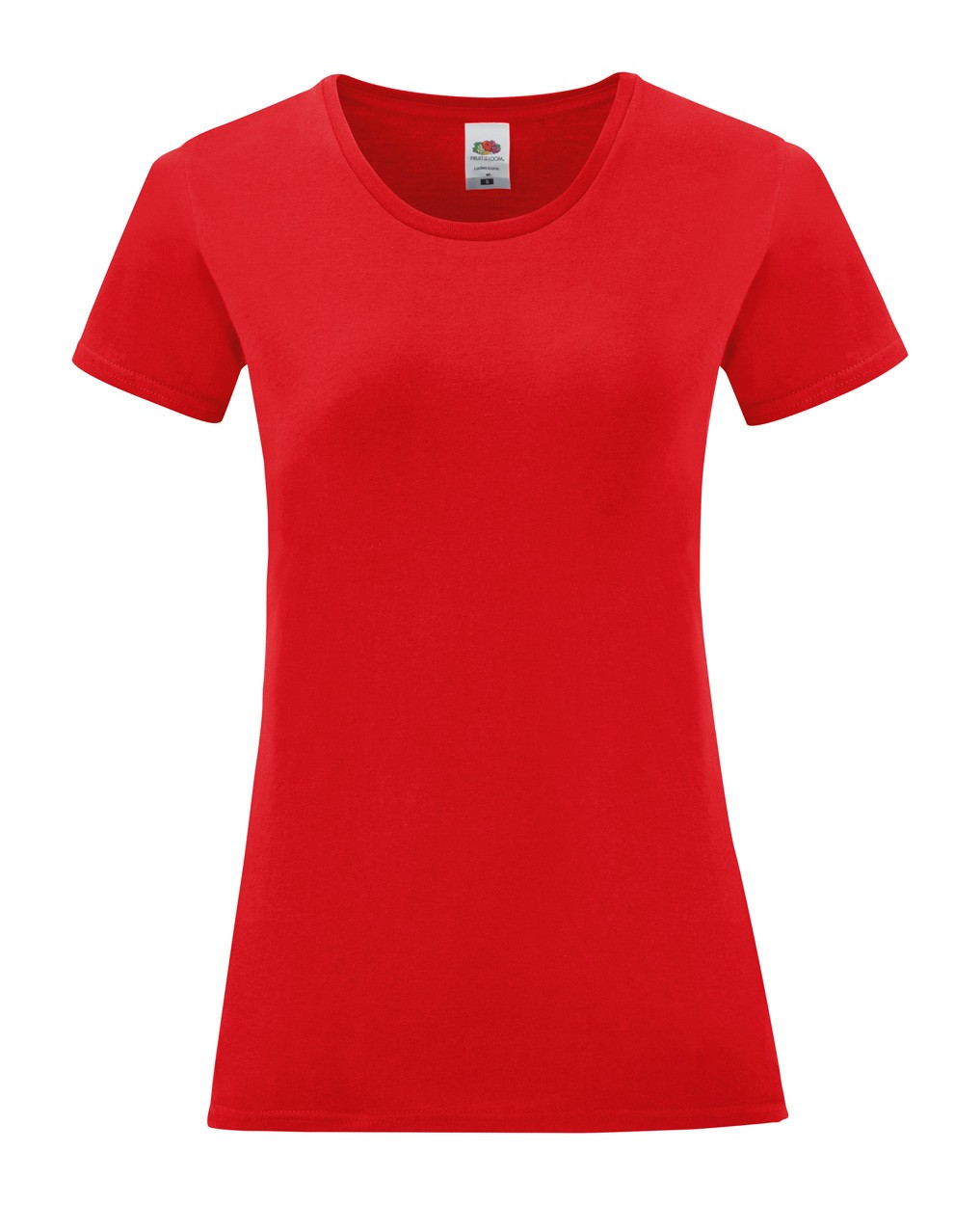 Tricou de damă, color, cu gât rotund. 100% bumbac pieptănat, ring-spun, 150 g/m². Produs marca Fruit of the Loom.