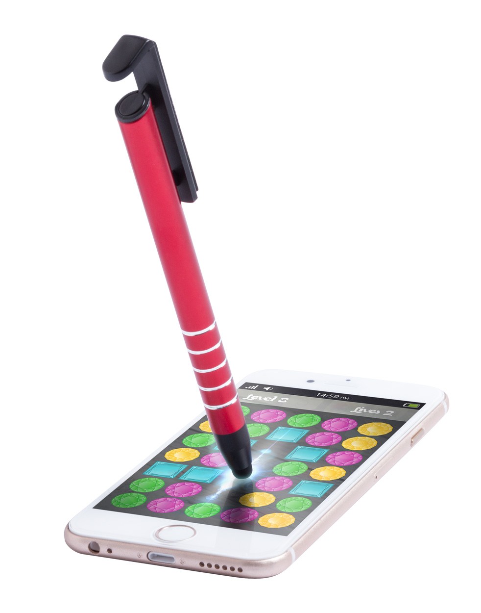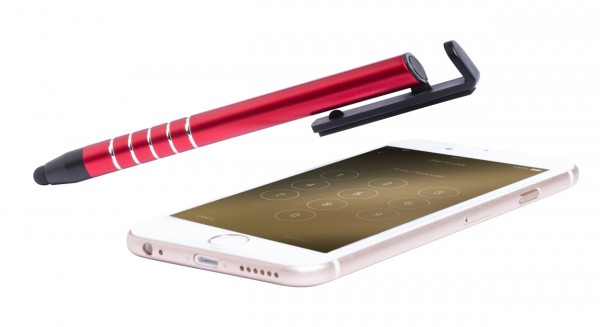 Pix din aluminiu cu touch, cu suport pentru telefon mobil și curățător pentru ecran. Mină albastră.