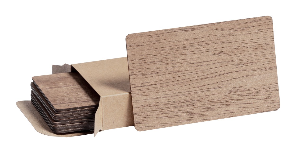 Set de carduri din lemn, de 10 buc, ideal pentru gravare cu laser. În cutie de hârtie kraft.