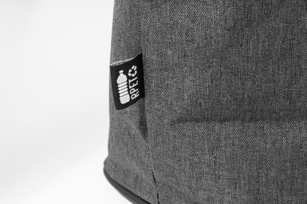 Geantă frigorifică, cu fermoar, din poliester 600D RPET, cu detalii din piele PU reciclată moale, căptușeală din aluminiu și curea de transport cu cataramă. Cu etichetă distinctivă RPET.