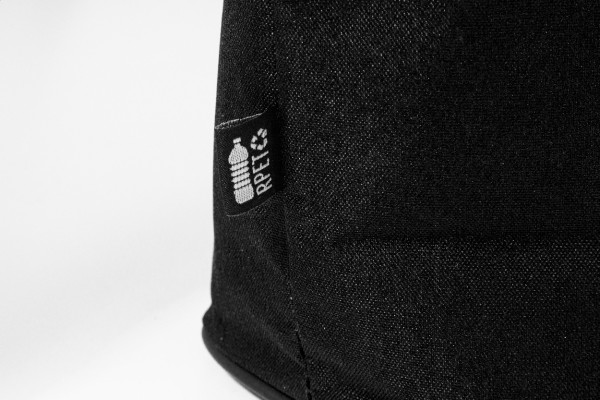 Geantă frigorifică, cu fermoar, din poliester 600D RPET, cu detalii din piele PU reciclată moale, căptușeală din aluminiu și curea de transport cu cataramă. Cu etichetă distinctivă RPET.
