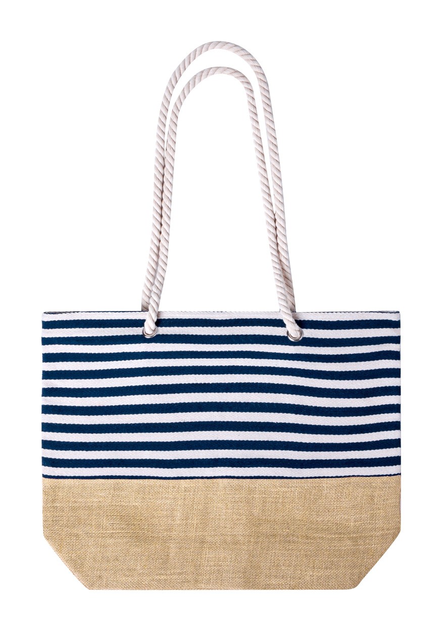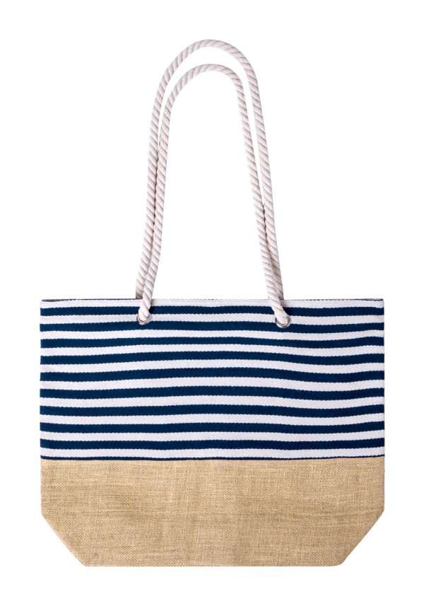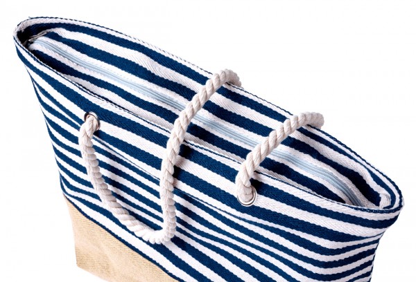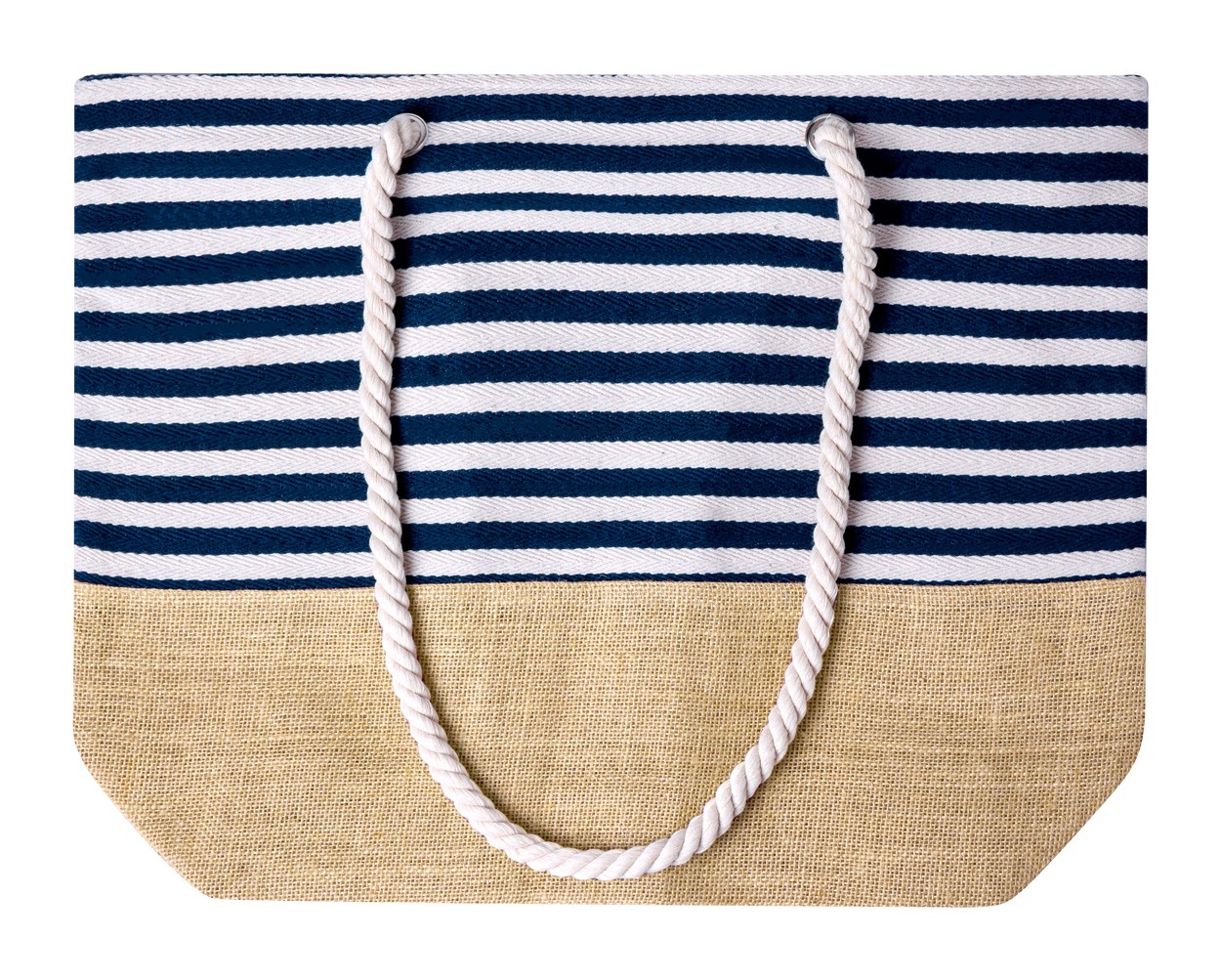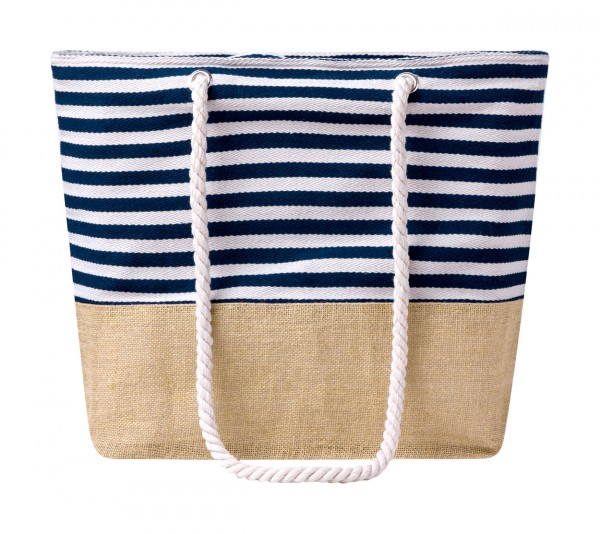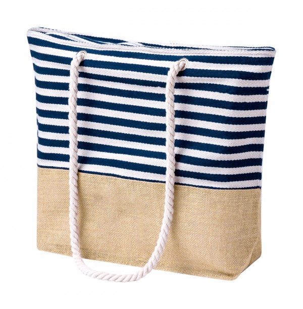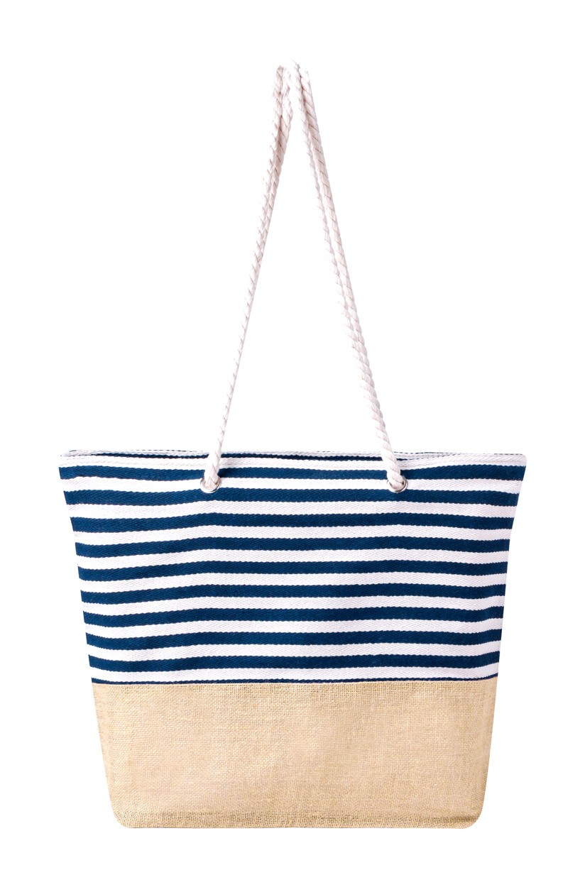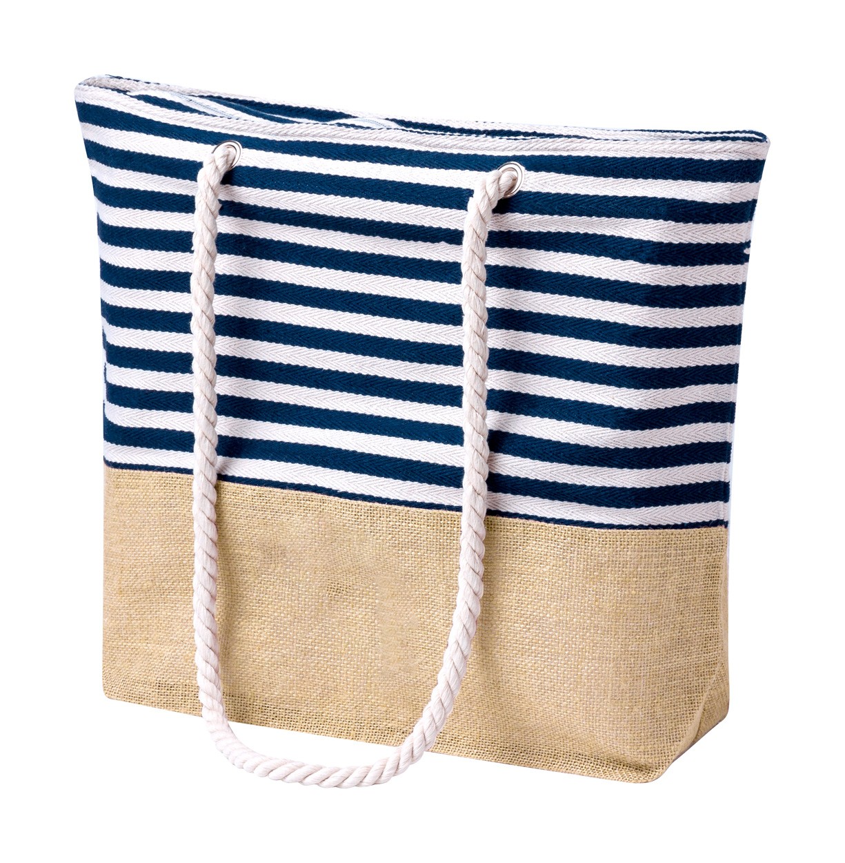 Geantă de plajă din iută și bumbac,bicoloră , cu fermoar, cu mânere din șnur împletit, 450 g/m².