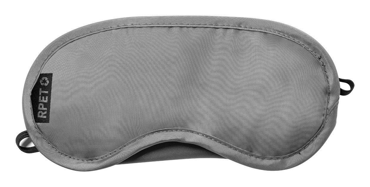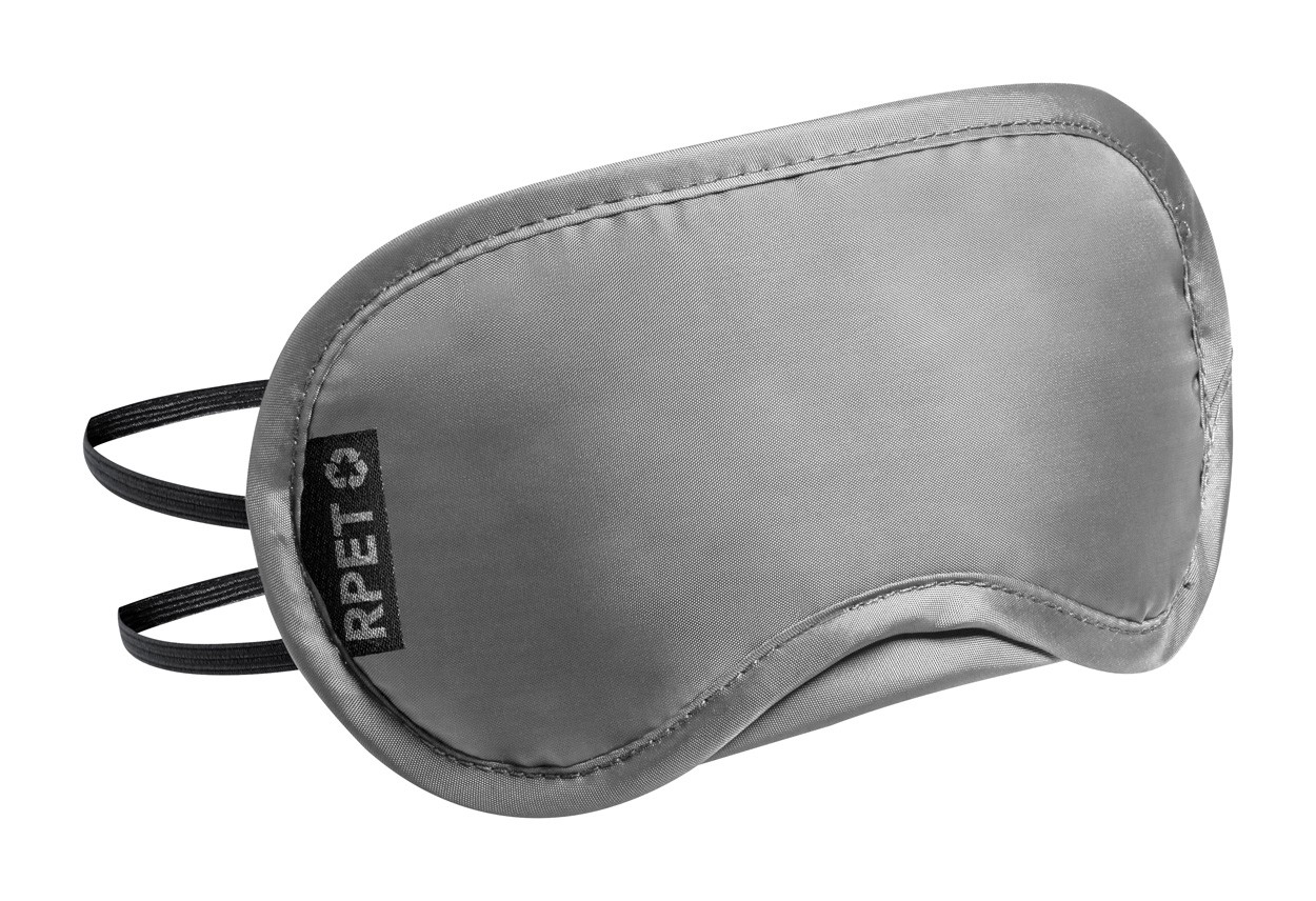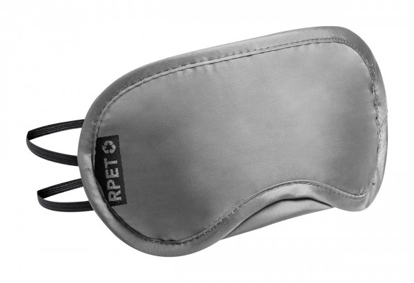 Mască pentru ochi, de călătorie, din poliester RPET cu curele de cauciuc, în husă cu șnur RPET. Cu etichetă distinctivă RPET.